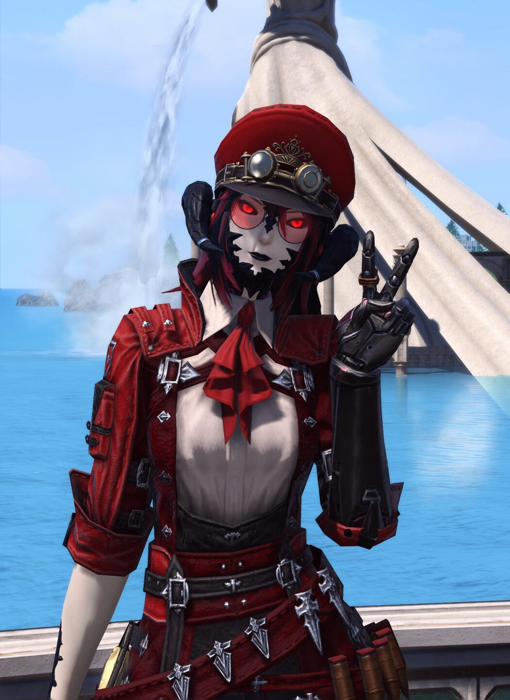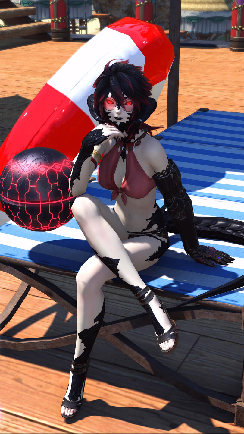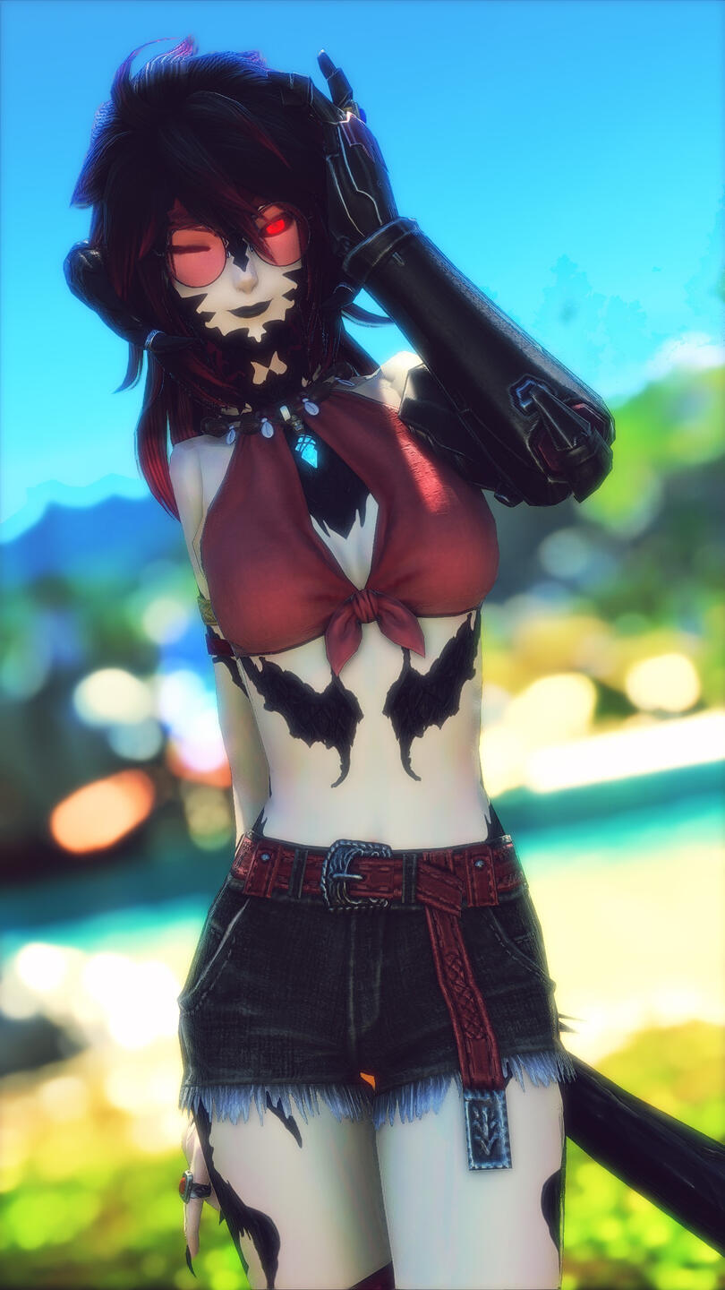 Though born as a healthy Xaela and adopted into the Borlaaq tribe at a young age, early on in life Khojiin discovered that, unlike most of her kin, she was unable to manipulate aether. This left her unable to do much in the way of magicks and so instead she resorted to learning to work with her hands, learning from an early age to work with physical objects to create new things.When she was old enough to travel alone she left the Steppe and ventured out into the wider world studying the various forms of crafting, ultimately choosing to become a machinist and engineer.Upon her arrival in Eorzea, fresh off the boat in Limsa Lominsa Khojiin was without so much as a gil to her name. Finding her way to the Maelstrom, she chose to join up and became very adept at arms and armor repairs for various officers, eventually climbing through the ranks herself. Though her work in the Maelstrom she was introduced to Cid Garlond. When Cid observed her skill as an engineer he offered her a position in the Ironworks, where she found a place to work and conduct her studies and experiments into self augmentation, endeavors she has been reasonably successful at.Her rather unique condition among Eorzeans lead her to her studies on the Allagan Empire and the study of magitek in general, seeing to find a way to augment her combat abilities through those means rather than relying on methods that required the ability to manipulate aether. Working with the Ironworks presented her a unique opportunity to study the floating continent of Azys Lla. Her studies lead her to separate from the Ironworks and eventually joint he Scions of the Seventh Dawn as their dedicated magitek engineer, finding them much more amenable to long absences as her studies took her throughout the realm.When the Scions traveled to Sharlayan in the midst of the final days, Khojiin accompanied them and was instrumental in constructing and piloting the starship Ragnarok. Following those events Khojiin petitioned the Sharlayan Forum to present her research on the Allagans and spent several weeks as a guest, and eventual member, of the Students of Baldesion preparing a full thesis on their technologies. Following her presentation and defense of her thesis, she was granted the title of 'Archon' and given the mark signifying her as such.She now functions as a freelance engineer and bodyguard. If you need something built or protection while adventuring, she can help you, for the right price.Some of Khojiin's magitek implants include a pair of ocular implants, which give her her unique look, a prosthetic arm and a neural interface that connects them with her body..